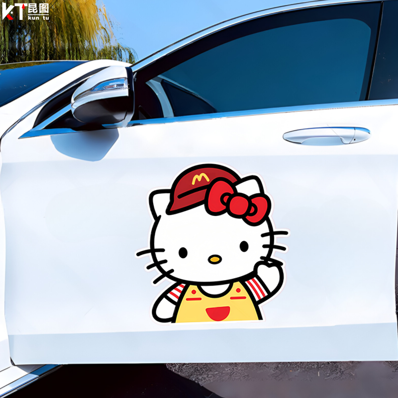 HelloKitty车贴卡通电动车装 饰车门可爱KT猫汽车划痕遮挡贴纸防水