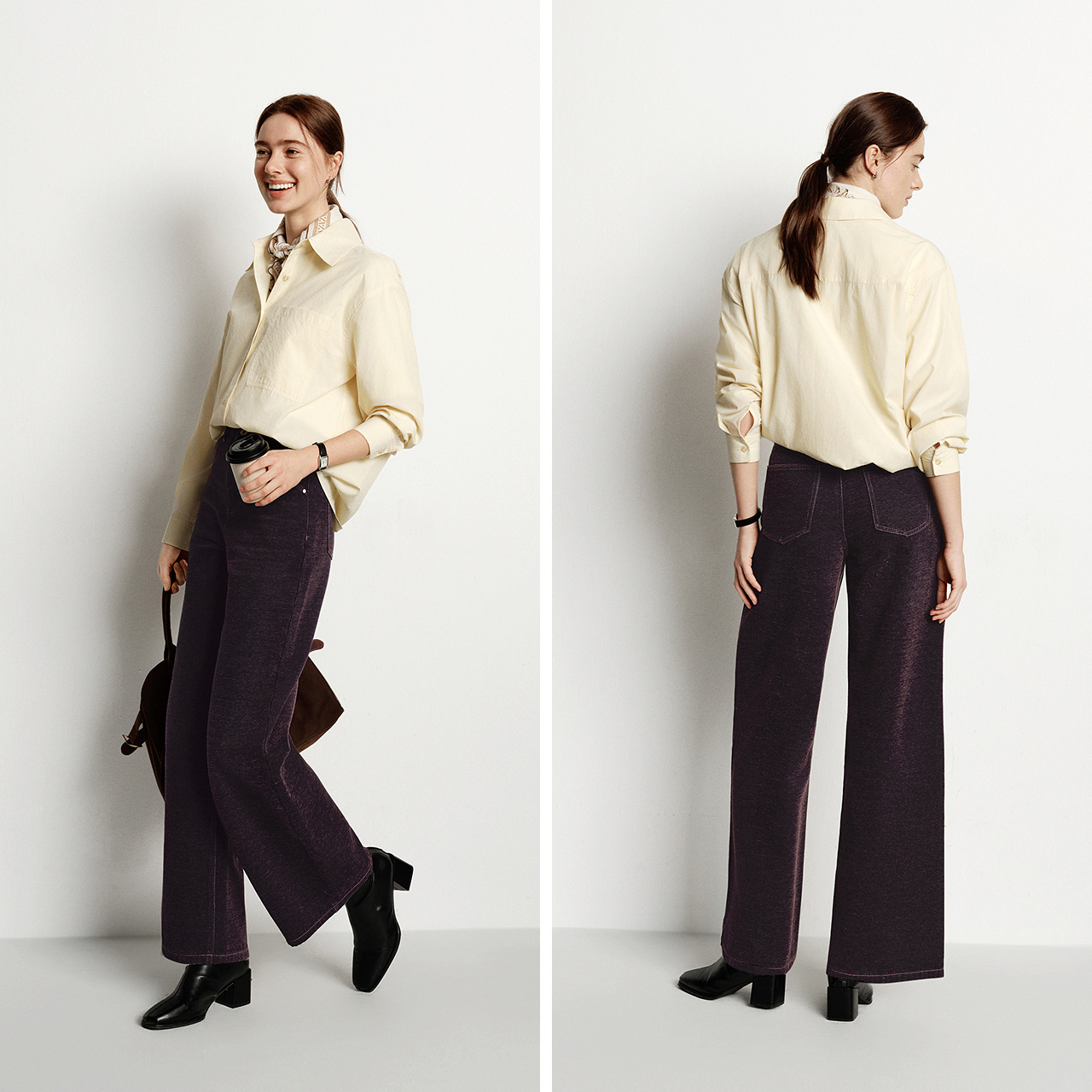 复古街头宽松阔腿裤 酷飒风2025新款 女冬美拉德植绒长裤 森马牛仔裤