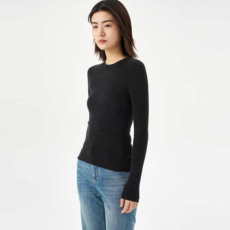 显瘦针织衫 OTT2025秋季 女修身 全成型圆领美丽诺羊毛织套头衫 新品