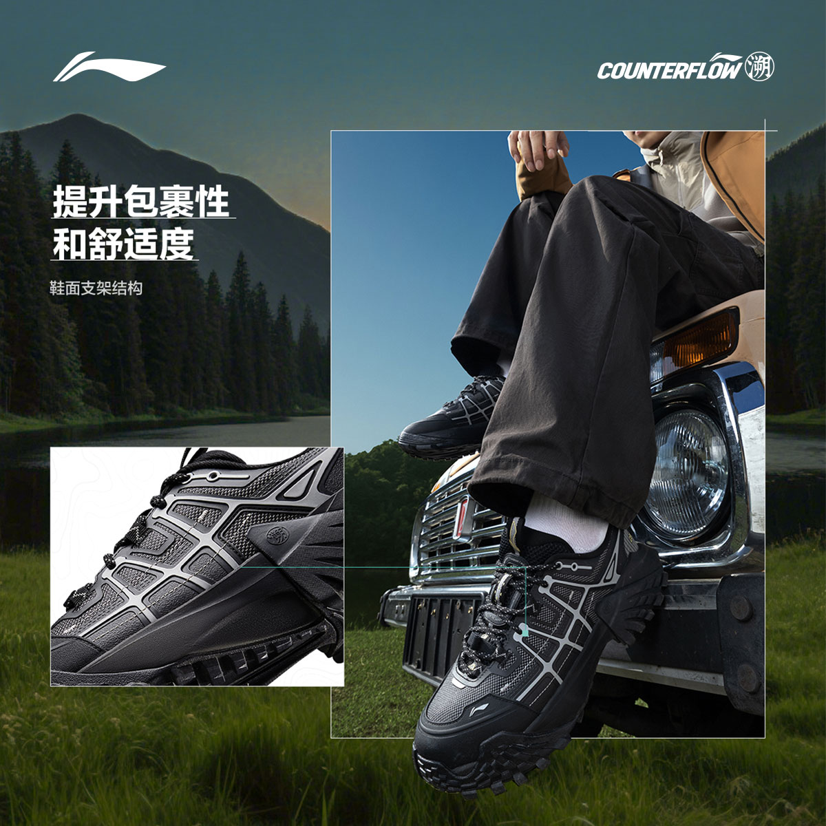 男女鞋 林川休闲鞋 李宁户外CF溯 缓震防滑徒步运动鞋 双11预售