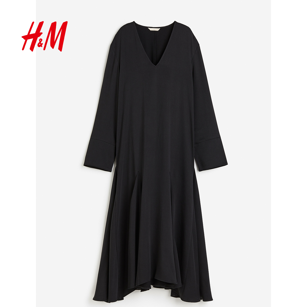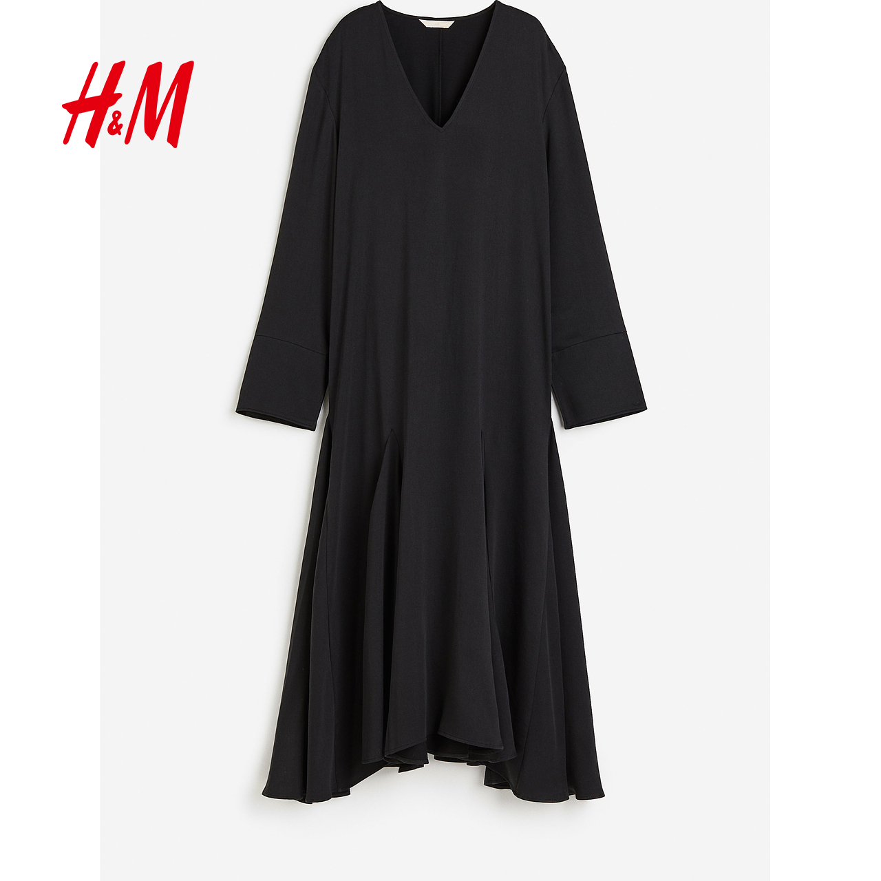 毛衣裙黑色裙子潮o8 女气质长款 唐狮连衣裙女圆领假两件针织春季 款