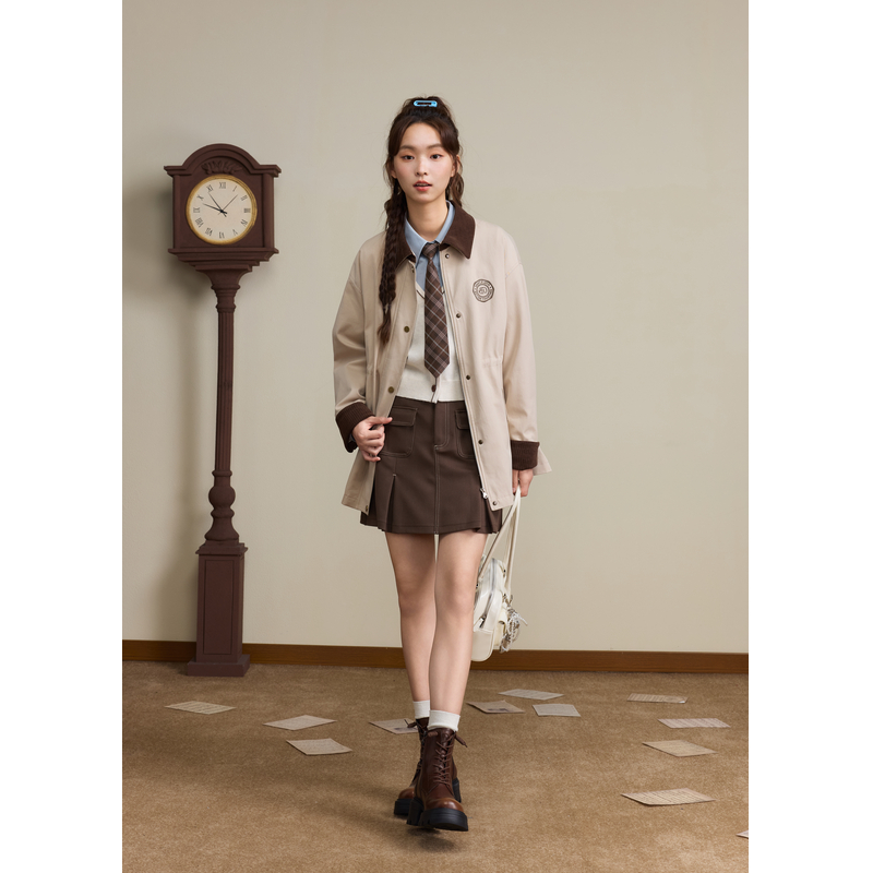 大码 百褶裙jk半身裙女秋冬百搭胖mm遮胯高腰显瘦a字短裙 咖色西装