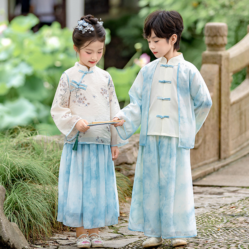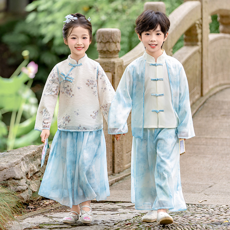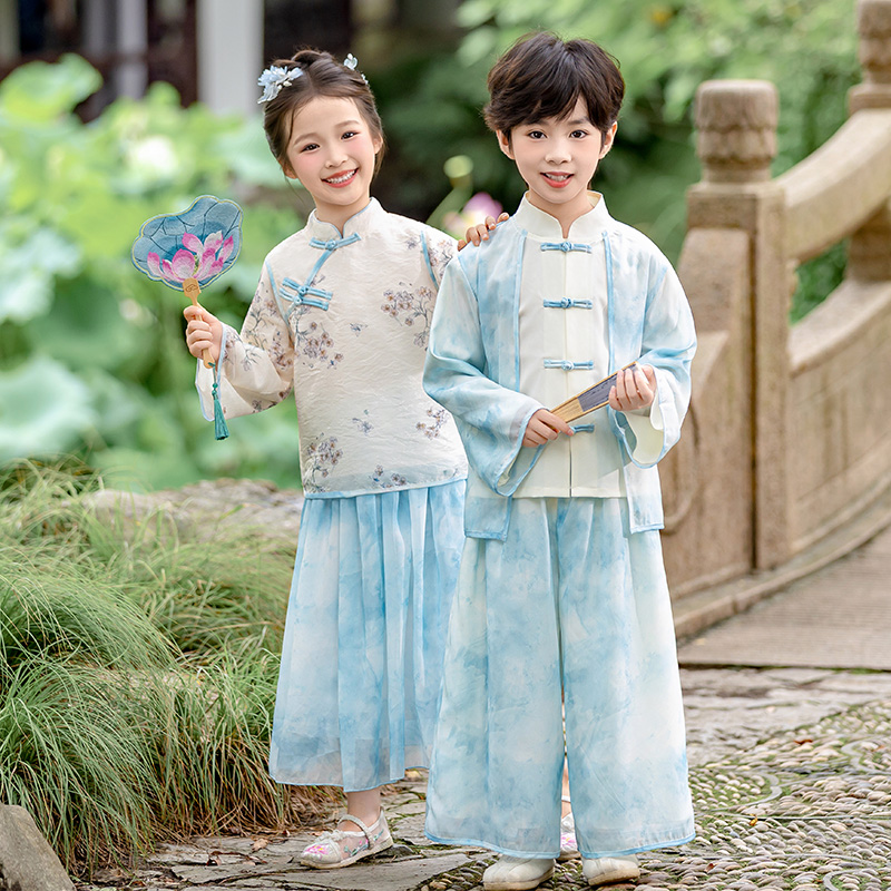 春秋男童唐装 汉服女童新中式 古装 夏季 中秋儿童演出服 国风超仙套装