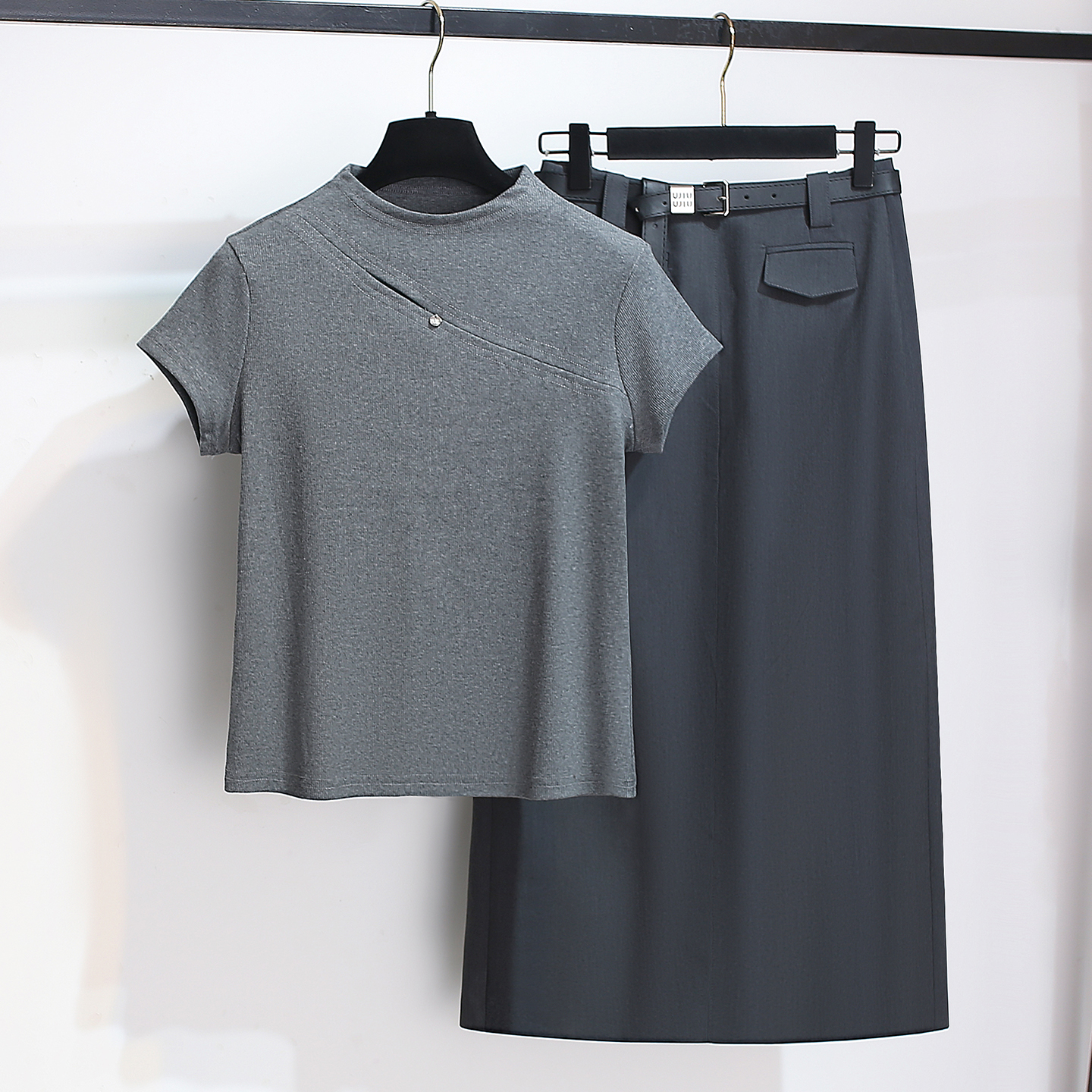 T恤西装 立领短袖 半身裙女2025早秋季 新款 今年流行 两件套装 爆款