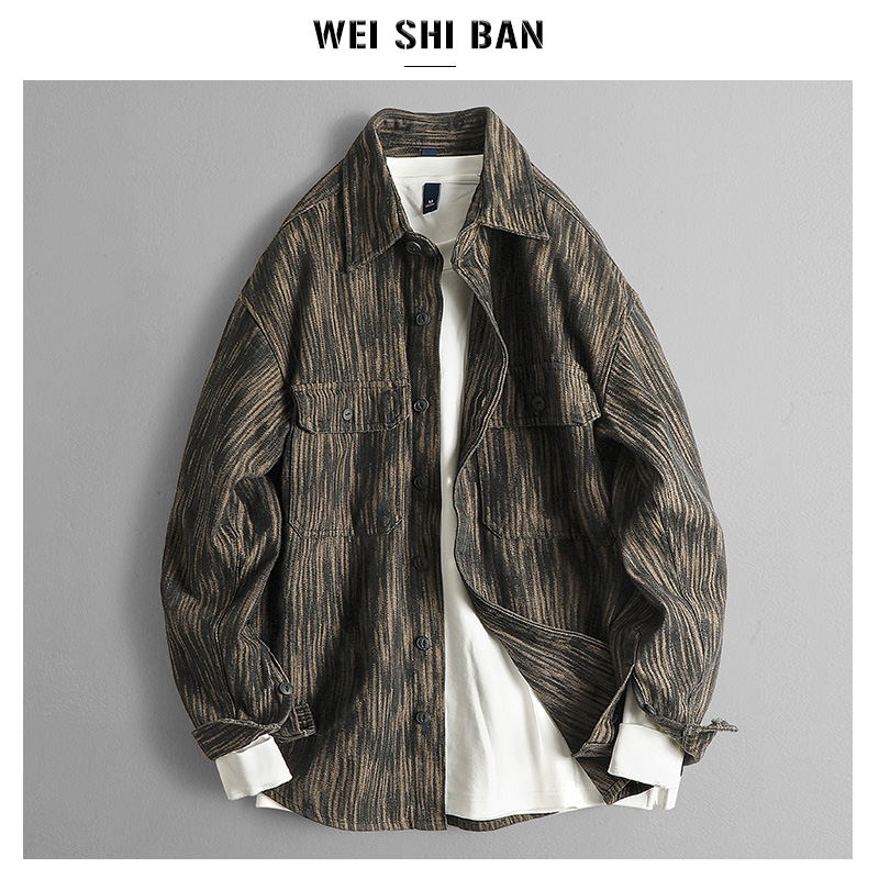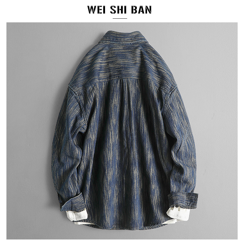 夹克 男外套复古宽松牛仔衬衣式 早秋2025新款 重磅日系扎染条纹衬衫
