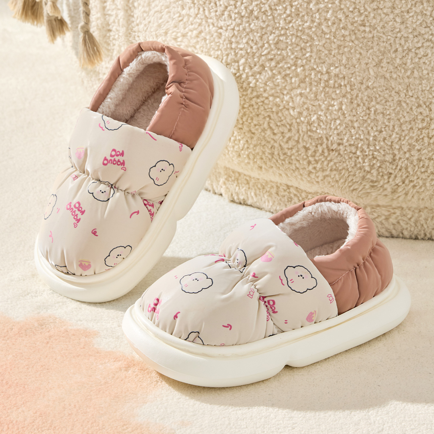 居家包跟加绒保暖宝宝防水棉鞋 2025新款 女童 男童秋冬季 儿童棉拖鞋
