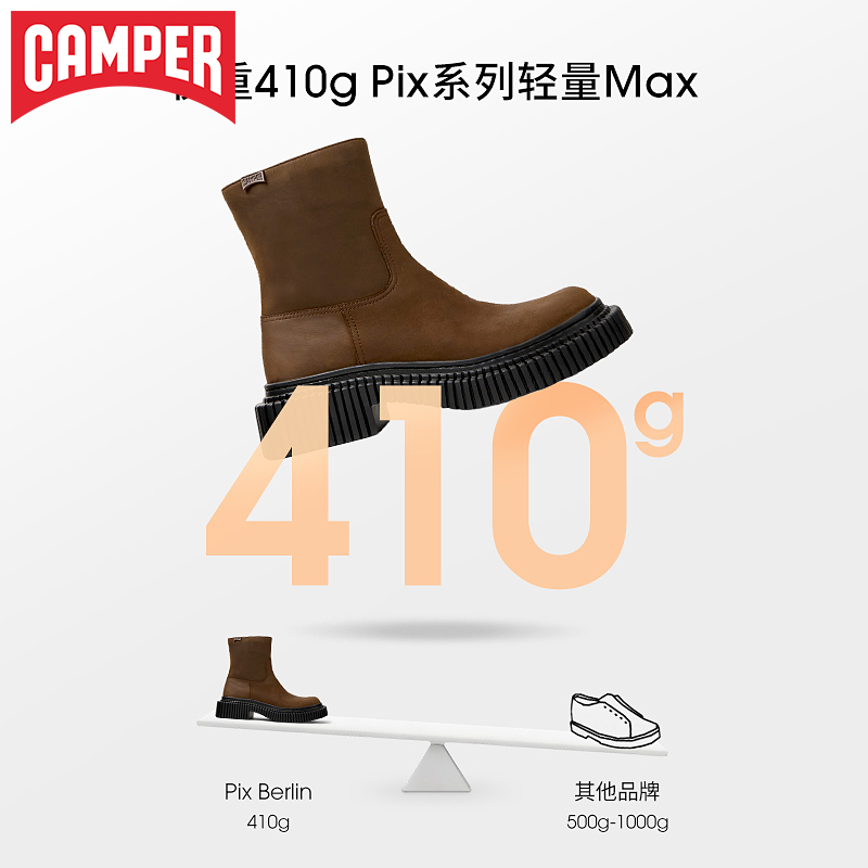 Camper看步女靴Pix 皮靴英伦风潮流百搭中筒靴 Berlin黑色经典