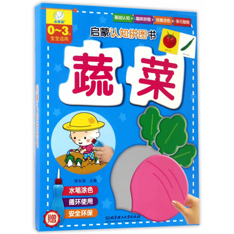 动物数字水果识车蔬菜日常用品基础认知创意涂色趣味拼图多元 北京理工大学出版 智能0 陈长海 社 3岁宝宝适用 启蒙认知拼图书6册