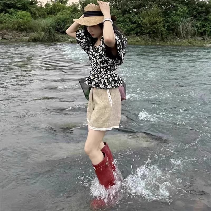 厨房水鞋 户外露营雨鞋 防水防滑水靴长筒靴 新款 厚底雨靴女2025秋季