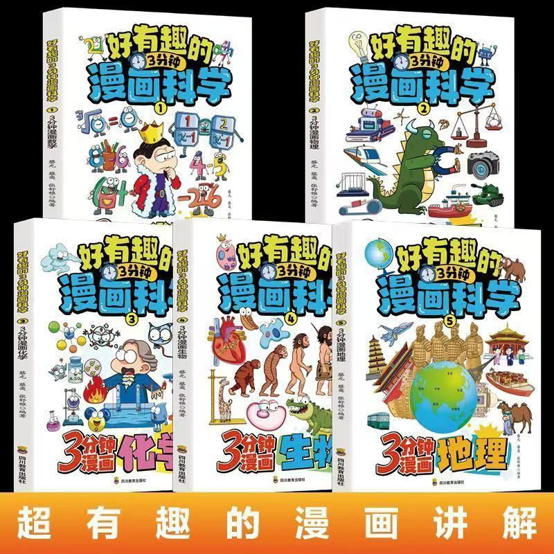 3分钟漫画科学 孩子超喜欢 5册 小学生版 科学书数学生物地理物理化学儿童趣味百科全书科普类书籍三四五六年级读物 正版 好有趣