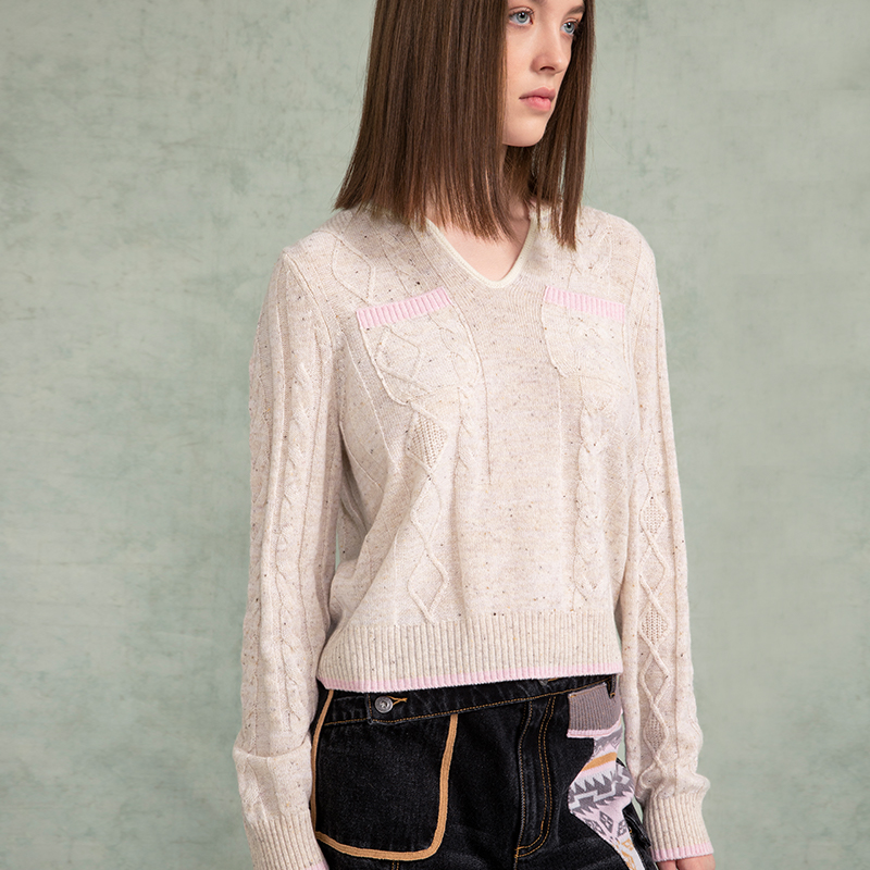 COCOBELLA气质原色V领仿羊绒针织衫 毛衣MZ3112 女通勤松弛小喇叭袖