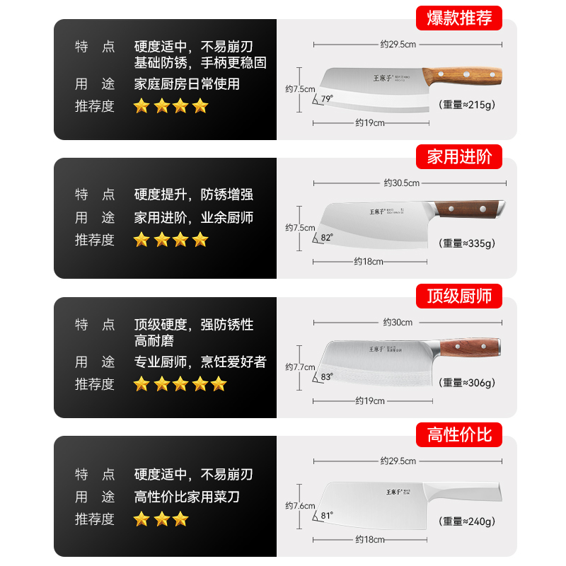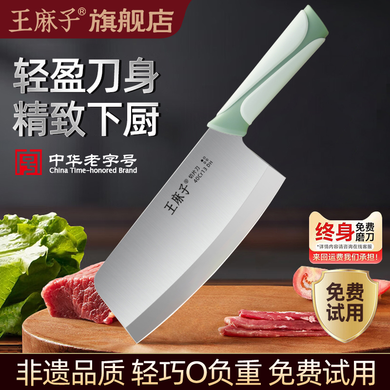 王麻子菜刀家用厨师专用切片切菜切肉刀具厨房锋利斩切不锈钢厨刀
