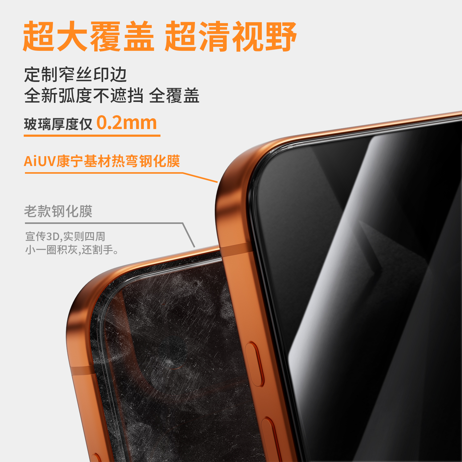 AiUV适用苹果iphone17promax钢化膜3D热弯全胶膜不遮挡16pro手机膜高清AR降反射16pm保护贴膜 新品