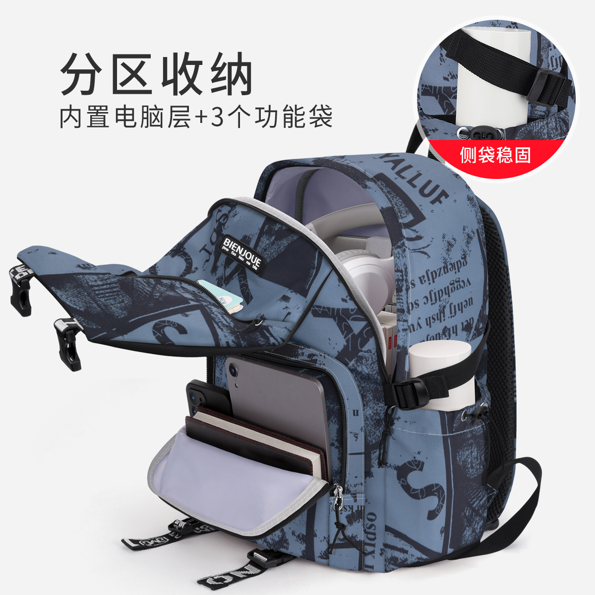涂鸦男大学生大容量高中初中生潮流双肩包背包女ins酷防水几何