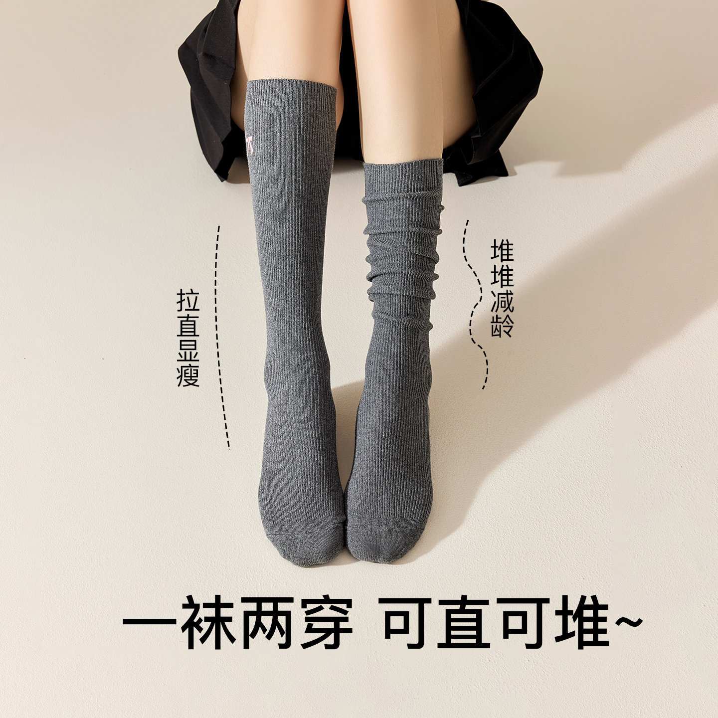 小腿袜子女秋春款 纯棉中筒袜刺绣蝴蝶结日系jk显瘦堆堆袜配小皮鞋