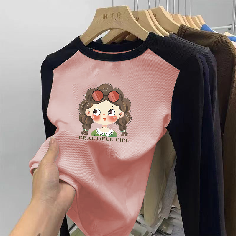 t恤中大童加绒加厚上衣潮 儿童保暖长袖 女童圆领德绒打底衫 秋冬款