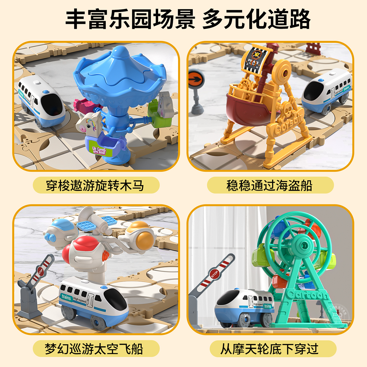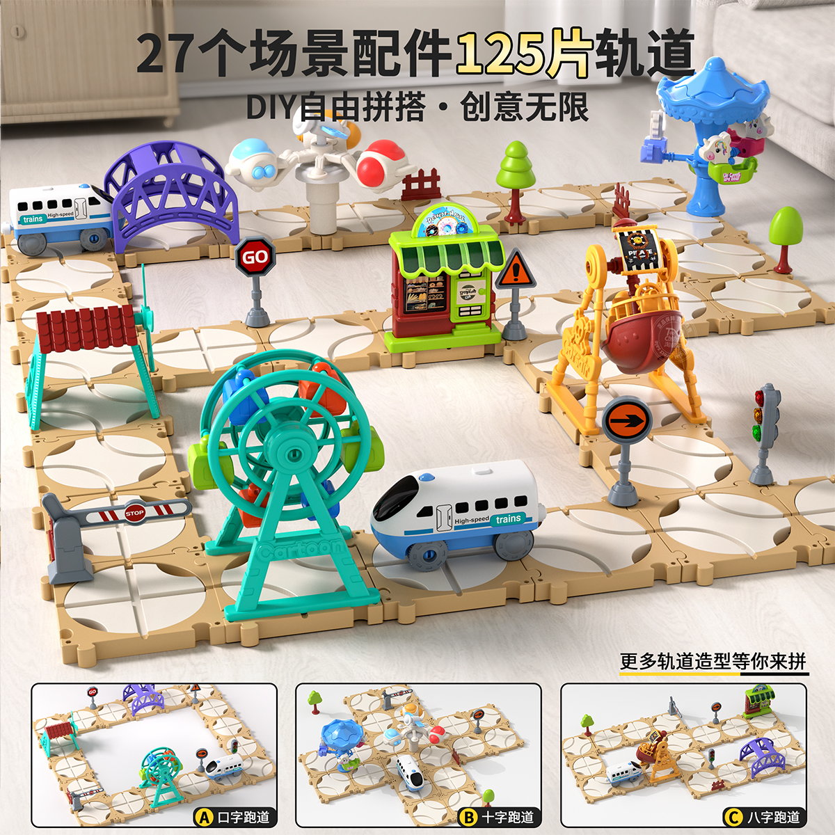 儿童电动小火车过山轨道闯关益智DIY拼图游乐园轨道汽车玩具男孩6