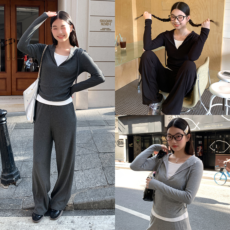 套装 女装 女小个子假两件时尚 爆款 两件套 气质2025新款 KV真维斯秋季