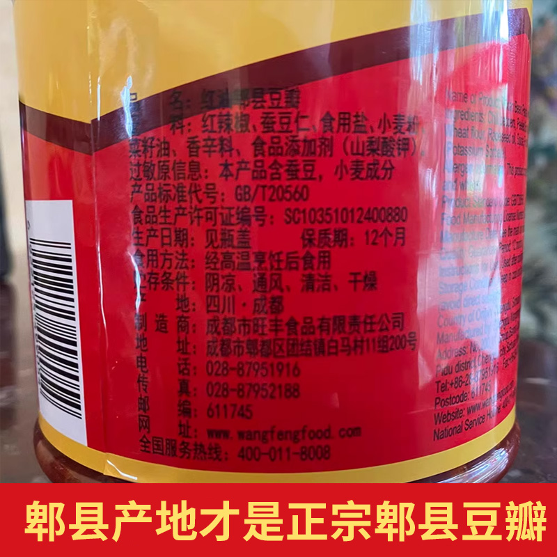 郫县豆瓣酱500g调味酱炒菜调料辣椒酱火锅干锅酱黄豆酱红油豆瓣酱