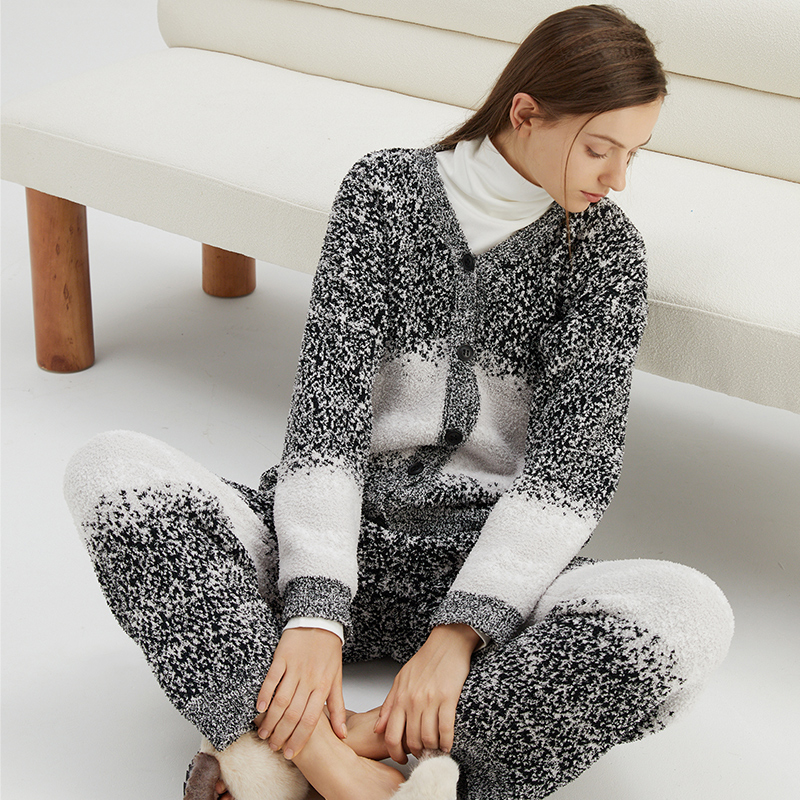淳度女士半边绒开衫 睡衣冬休闲加绒加厚柔软保暖舒适高级感可外穿