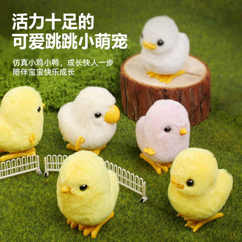 儿童发条小鸡玩具毛绒玩偶跳跳鹦鹉上弦上链小黄鸭婴儿宝宝1一2岁
