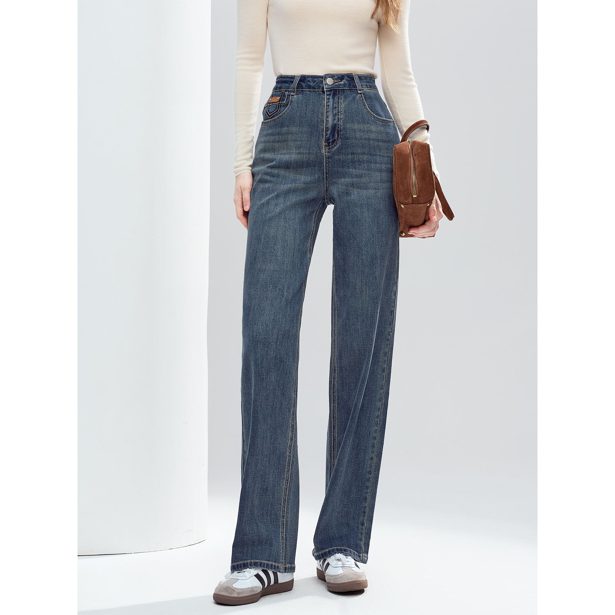 百搭高腰水洗牛仔裤 丹宁裤 女2025年冬季 直筒裤 新款 betu百图经典