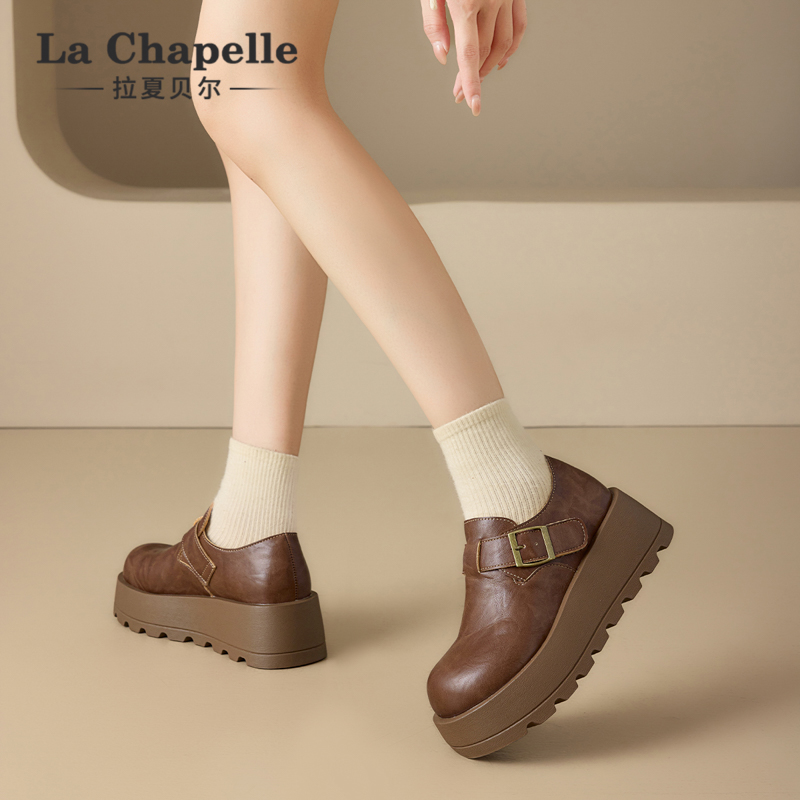 女2025秋季 乐福鞋 新款 子休闲爆款 英伦风小皮鞋 拉夏贝尔厚底勃肯鞋