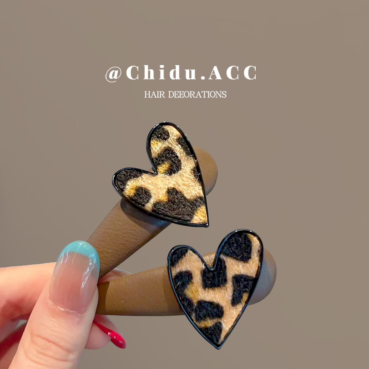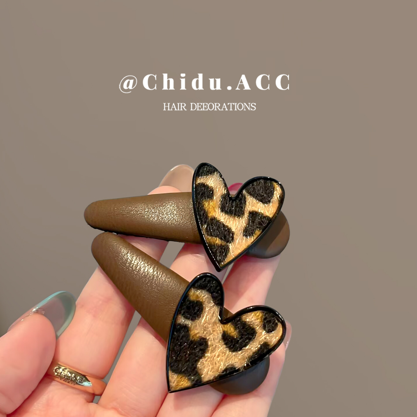 韩国头饰小众发饰秋冬饰品边夹bb夹咖色pu皮刘海夹爱心豹纹发夹