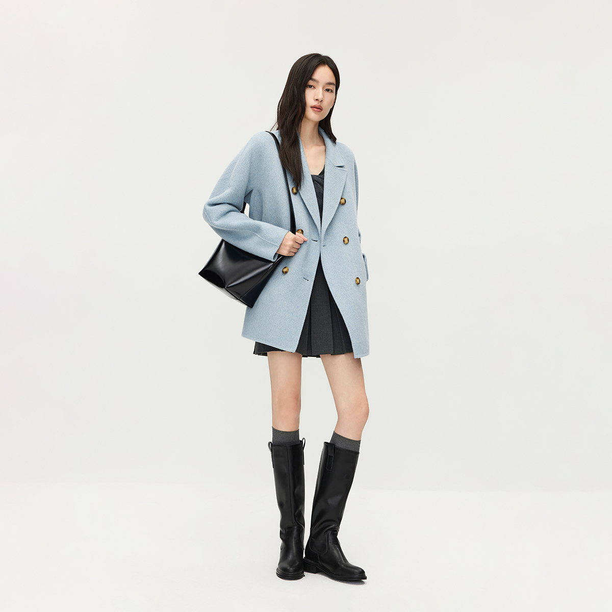 新款 2025冬季 秋水伊人优雅翻领毛呢外套 通勤大衣 100%绵羊毛