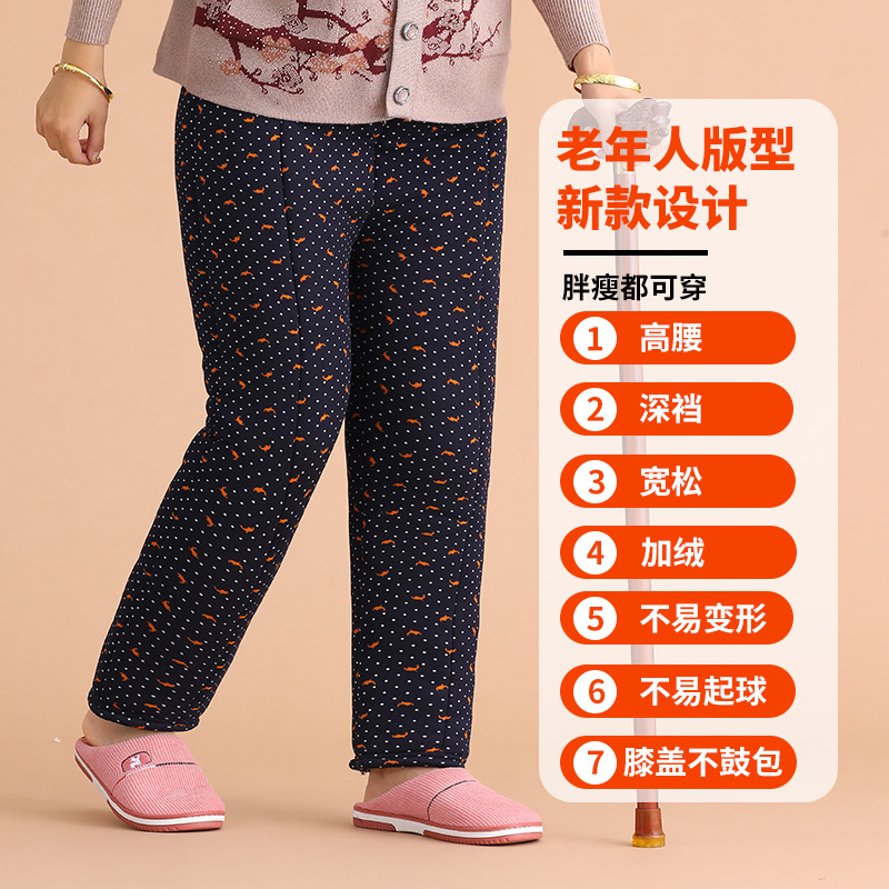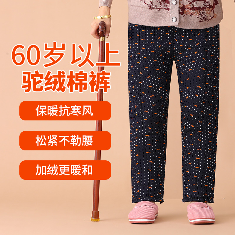外穿60岁直筒秋冬奶奶裤 加绒加厚中老年宽松保暖裤 女冬季 奶奶棉裤
