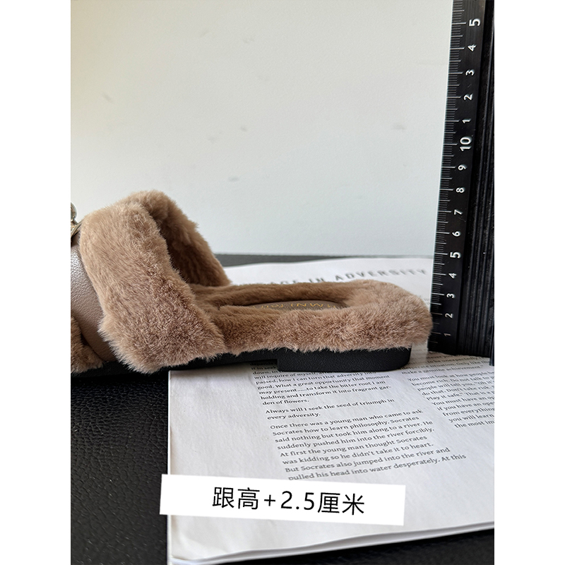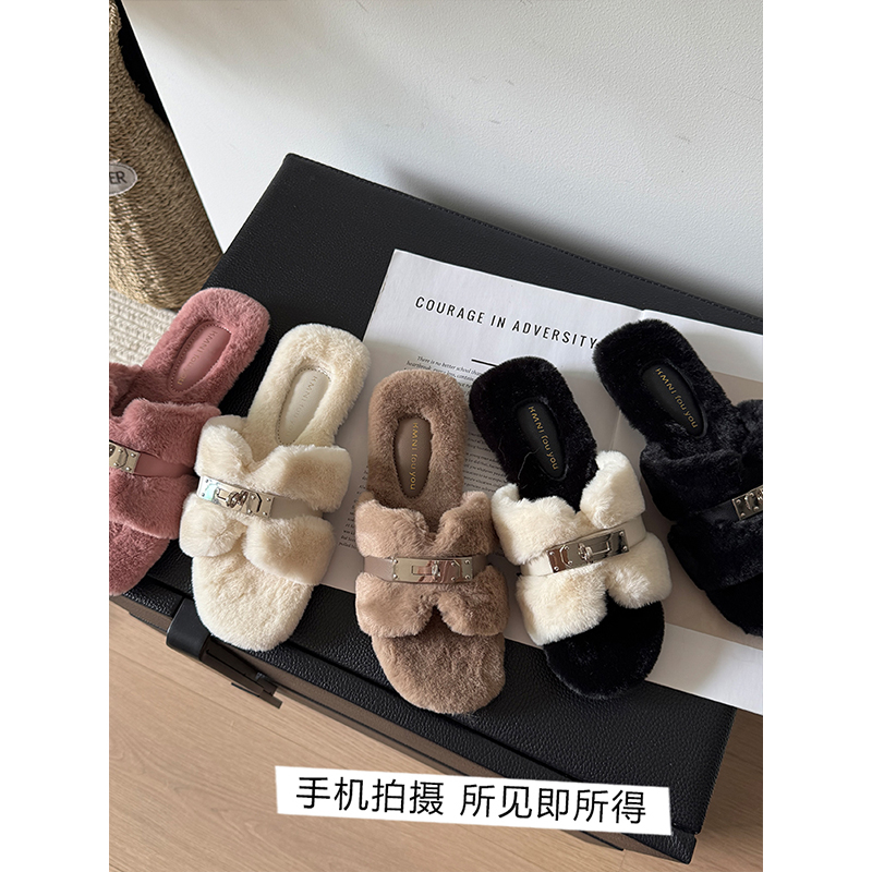 鞋 白色二舅毛毛拖鞋 毛茸茸名媛平底毛拖鞋 新款 子 女外穿2025年秋季