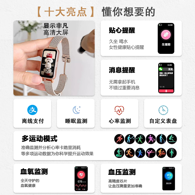 2025新款 智能手表女9pro来电提醒心率睡眠多功能健康检测振动闹钟运动手环10送女友高颜值礼物
