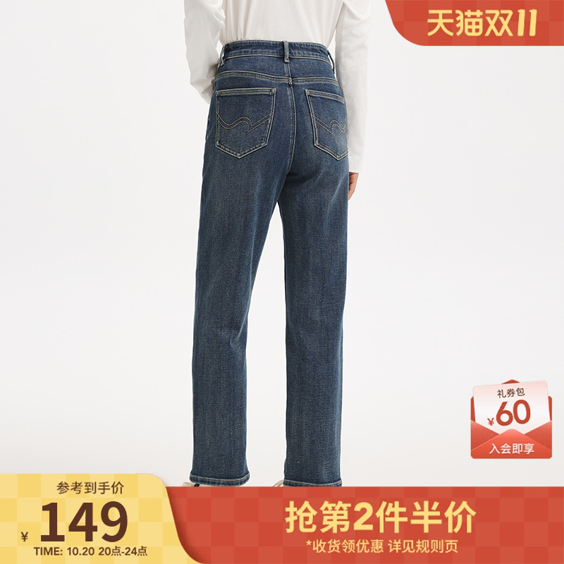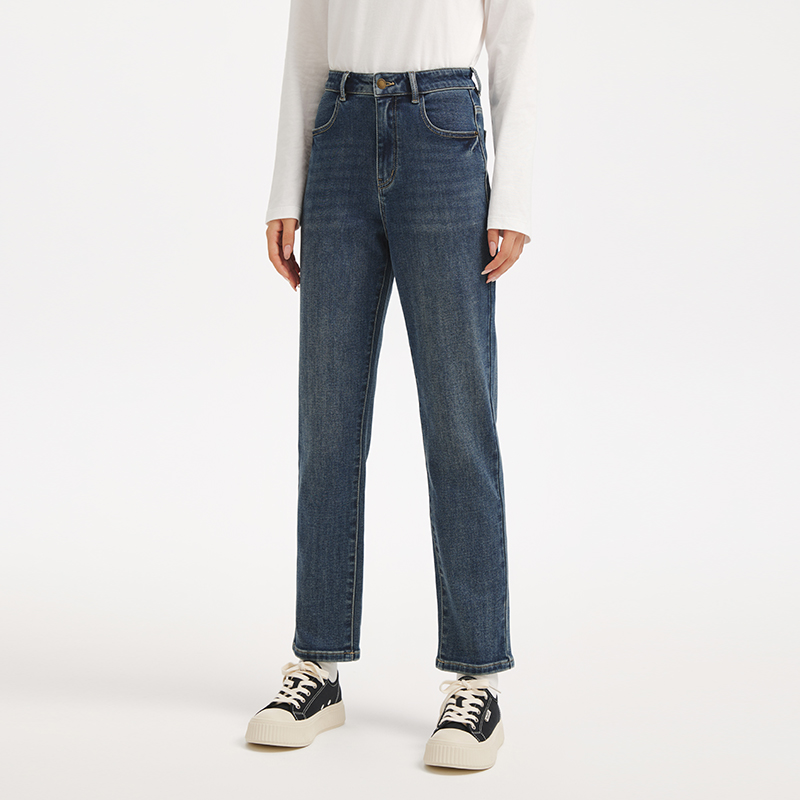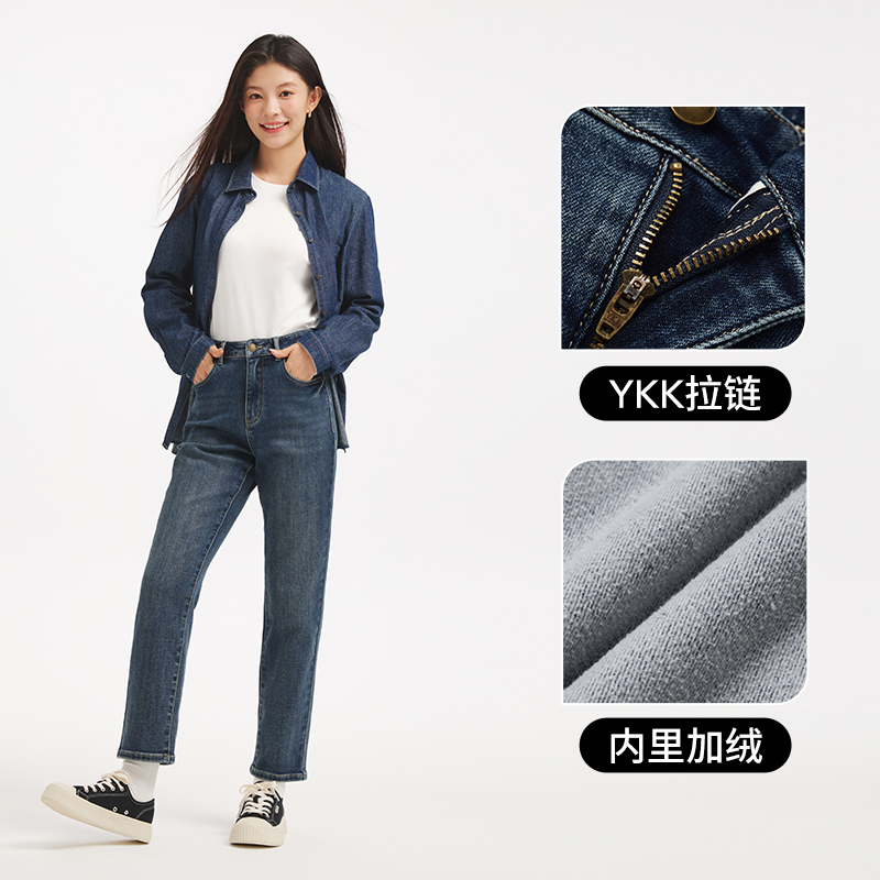 棉感亲肤舒适自在 女士加绒基础直筒牛仔裤 热风2025年冬季 新款