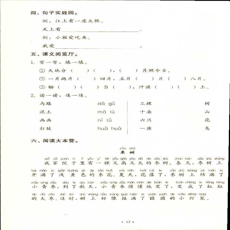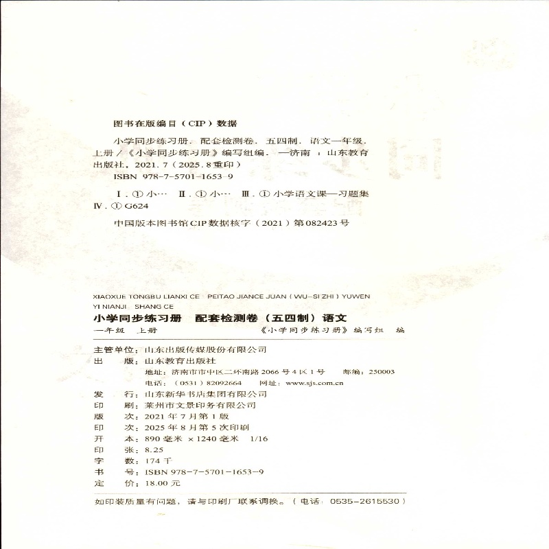 2025五四制1一年级上册语文小学同步练习册配套检测卷配人教版 社 山东教育出版