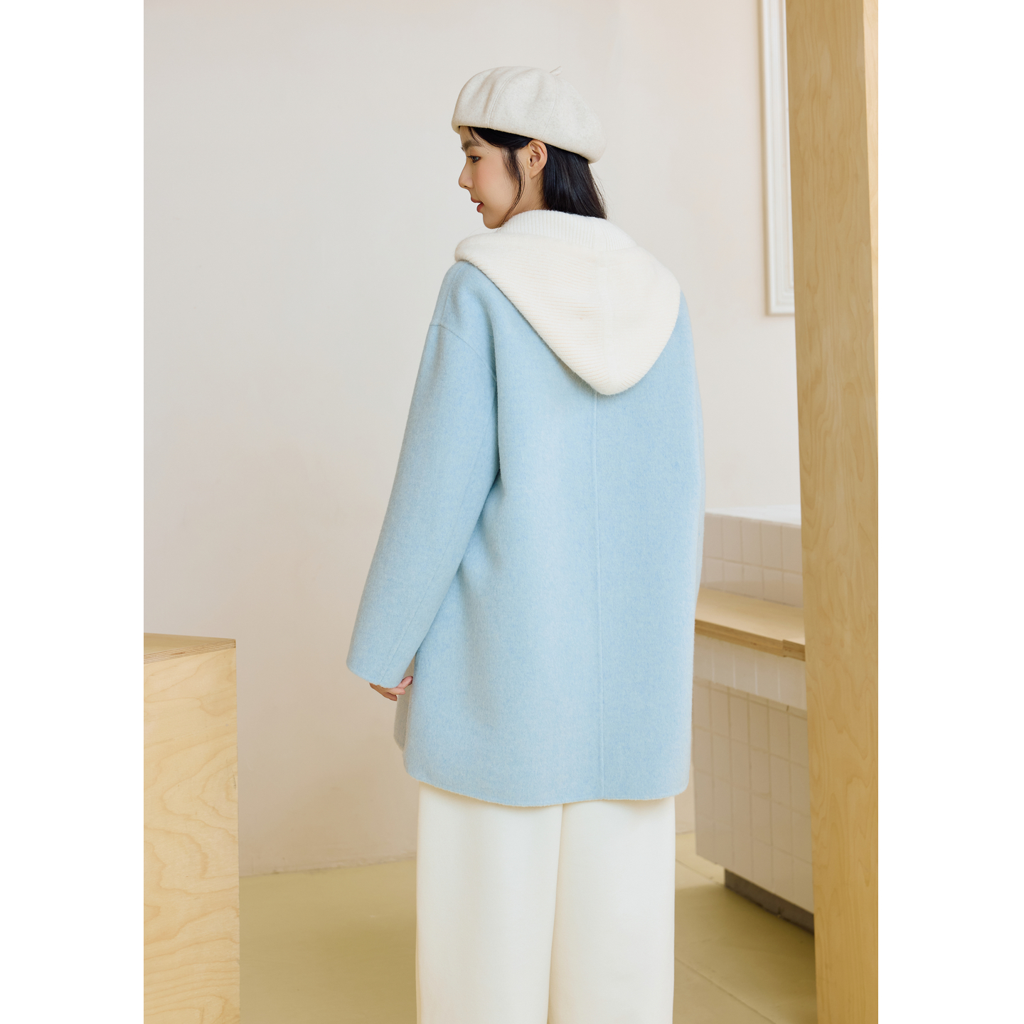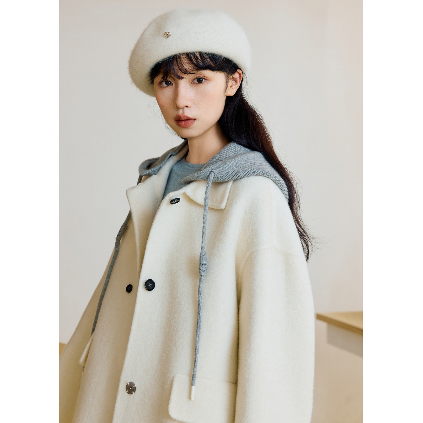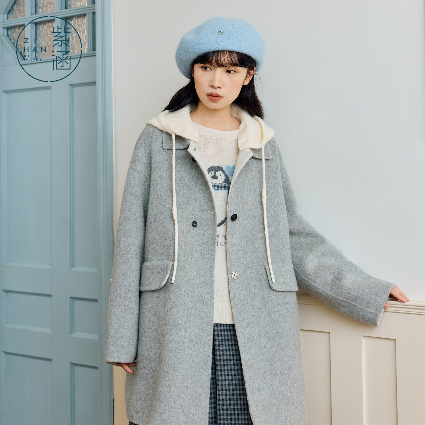 TeenieWeenie小熊女25秋冬连帽毛呢大衣外套 初代千金牛角扣