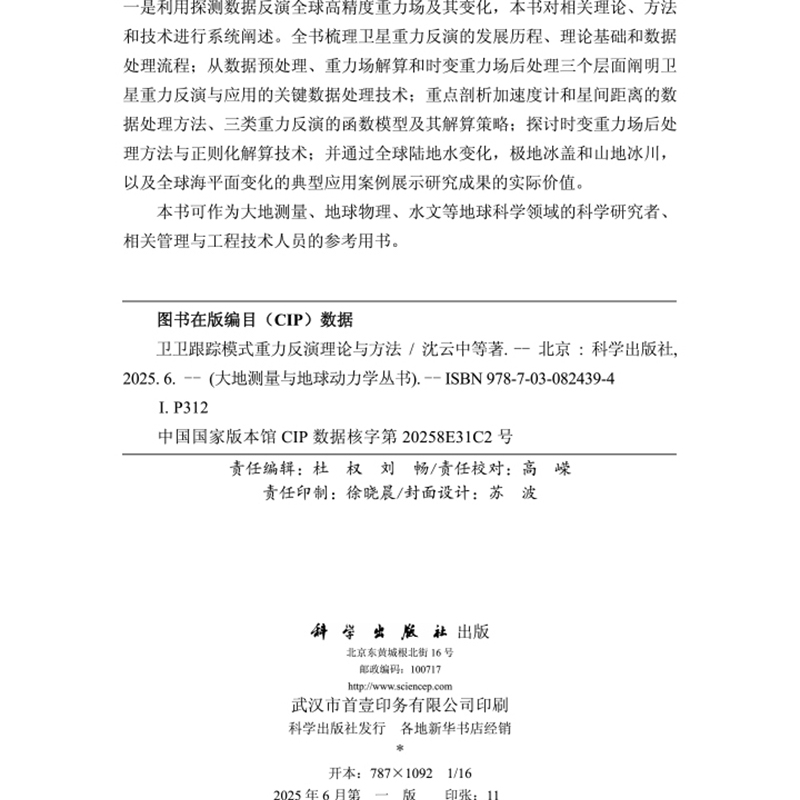 肖云 社9787030824394 重力反演理论与方法 科学出版 大地测量与地球动力学丛书 著 张兴福 陈秋杰 沈云中 卫卫跟踪模式 现货速发