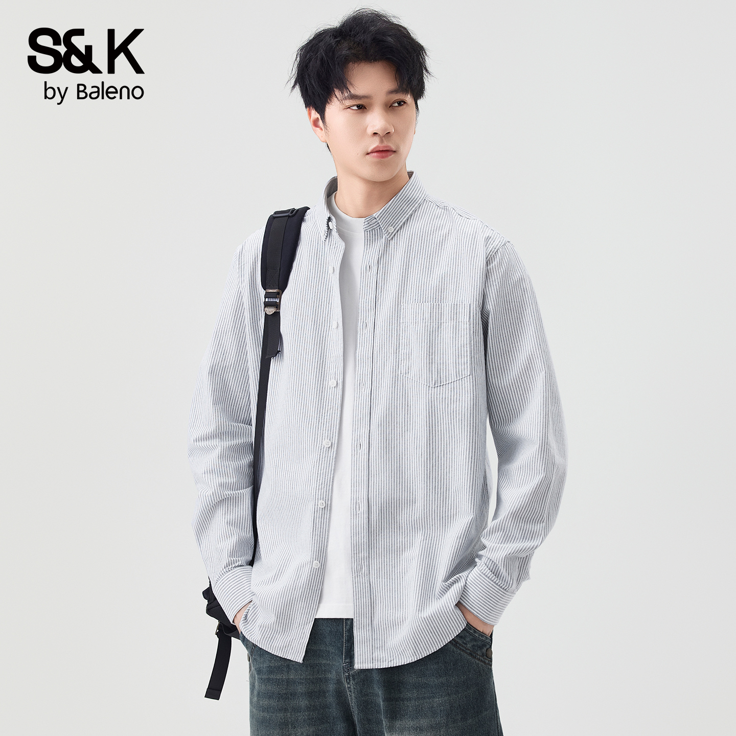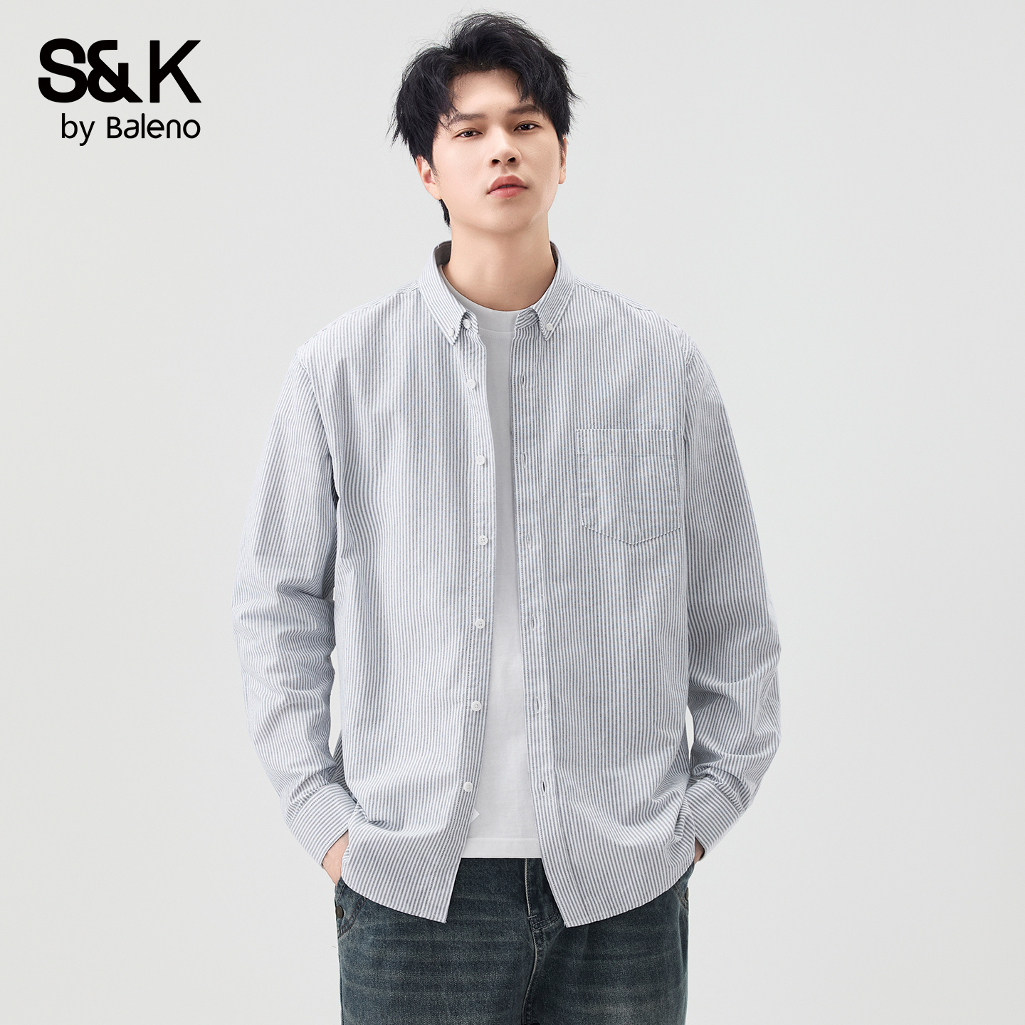 男士 开衫 秋季 宽松休闲长袖 百搭青年外套男MS 新款 班尼路SK纯棉衬衫