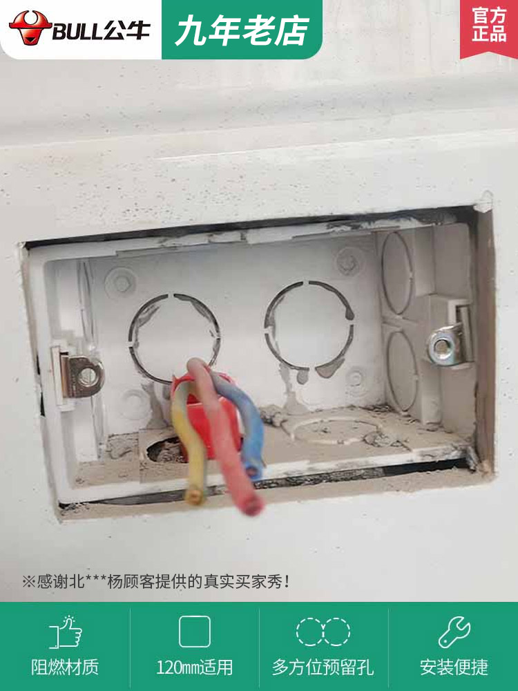 公牛118型三位暗装 底盒暗盒接线盒通用开关盒下线盒插座电线盒子