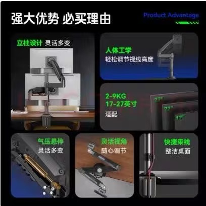 H180立柱双屏电脑显示器支架机械臂旋转上下升降桌面增高架子