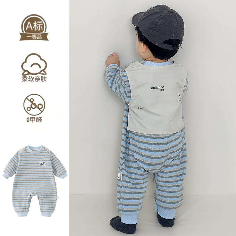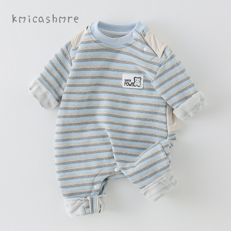 kmi新款 新生儿连体衣男宝宝周岁爬服满月百天哈衣 婴儿衣服春装