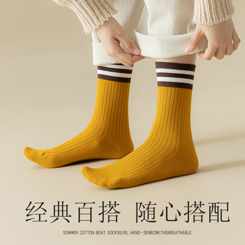 袜子女中筒袜秋冬ins日韩2025新款 拼色美拉德咖色复古色系女长袜