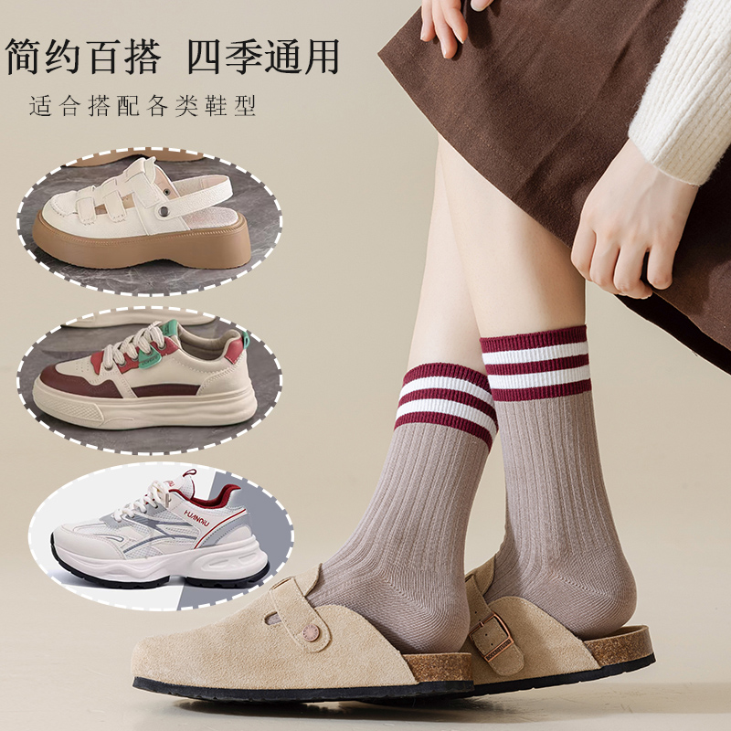 堆堆袜 长袜搭配勃肯鞋 袜子女士春秋季 中筒袜美拉德色系棉袜秋冬款