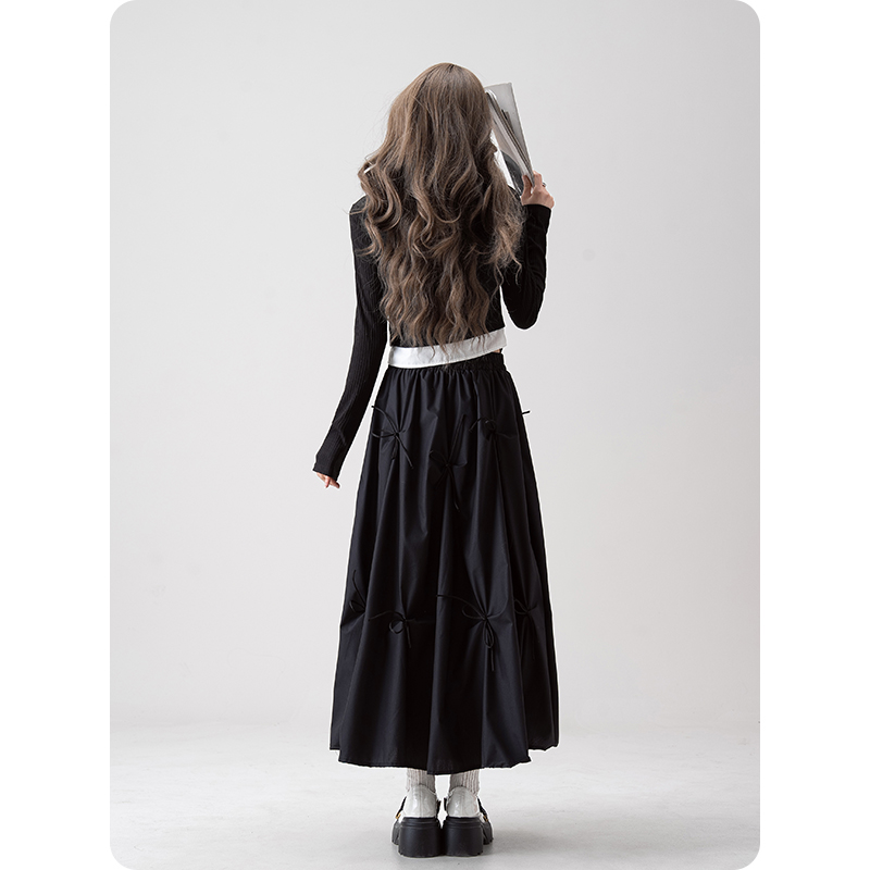 高腰显瘦a字开叉中长裙裤 修身 螺纹半身裙女春秋外搭2024新款 法式