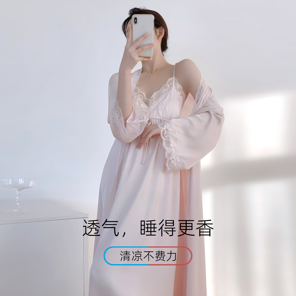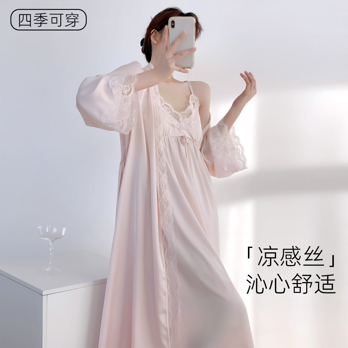 冰丝带胸垫性感睡袍两件套 夏吊带睡衣春秋季 乐姿梦25新款 睡裙女款