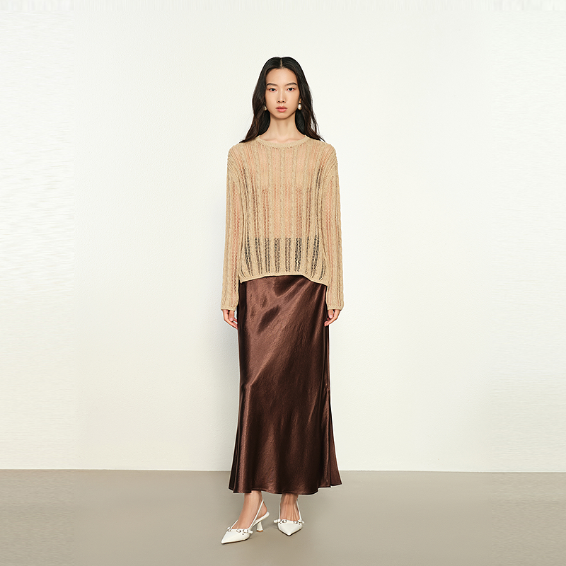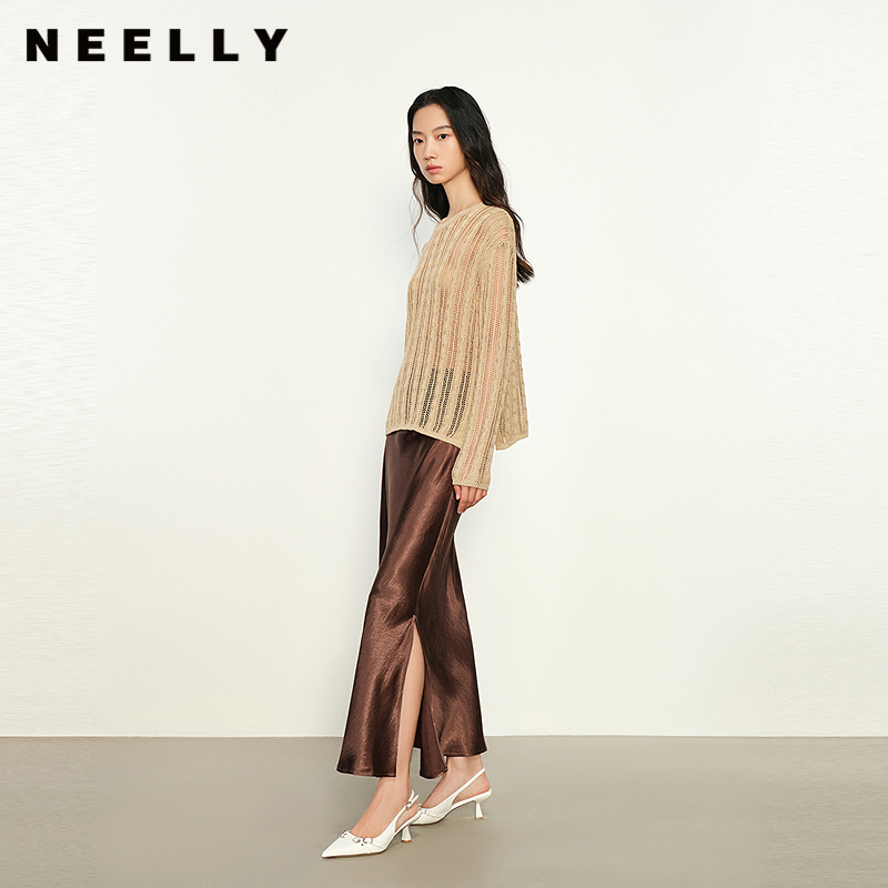 珂莱蒂尔2025秋新简约易搭丝绒半身裙子女中长裙 免定金
