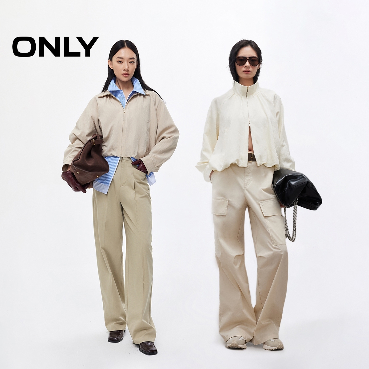 宽松高领休闲风薄款 ONLY2025秋季 风大口袋短款 工装 风衣外套女 新款