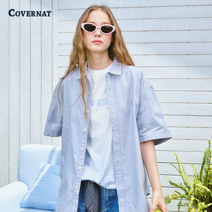 预售Covernat潮牌潮流短袖 男女情侣刺绣C标休闲纯白上衣夏新 衬衫