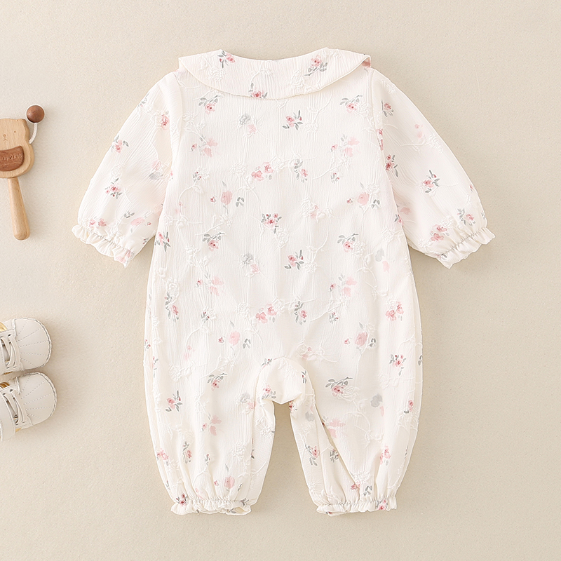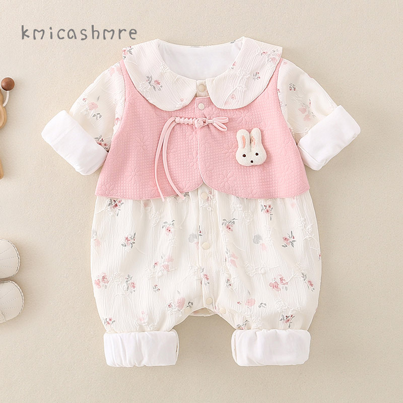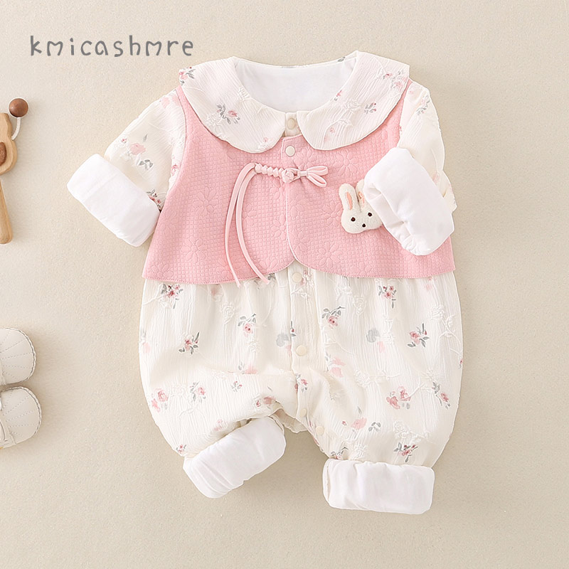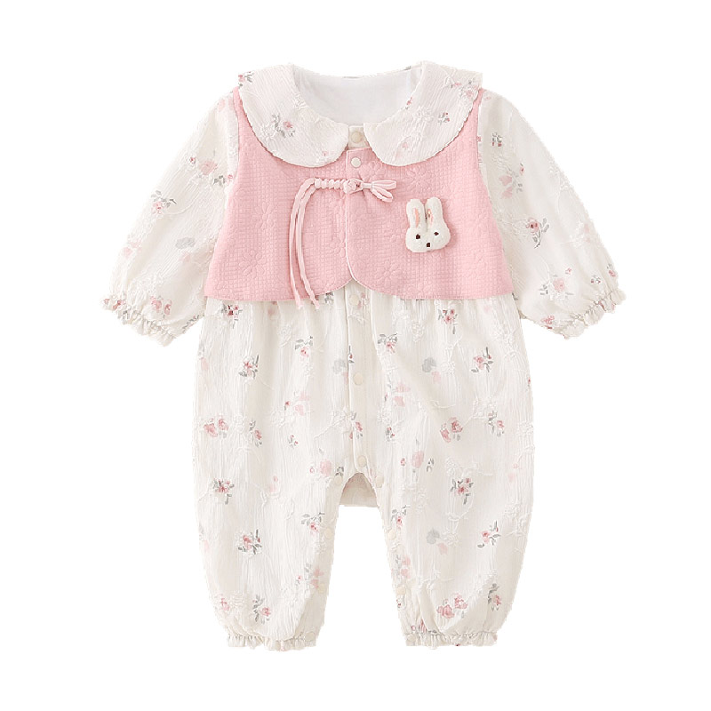 kmi婴儿衣服春装 外套哈衣春秋爬服 新生女宝宝连体衣公主双层开衫
