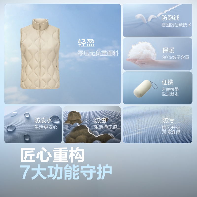 波司登25新款 立领轻薄保暖坎肩外套三防 羽绒服马甲背心内胆女短款