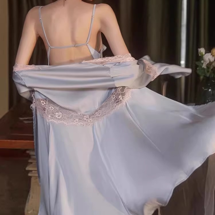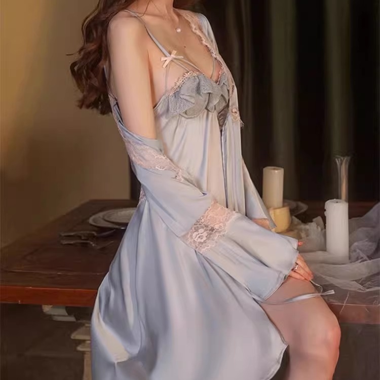 冰丝睡袍带胸垫聚拢趣味吊带睡裙 2025新款 纯欲风性感睡衣女款 夏季
